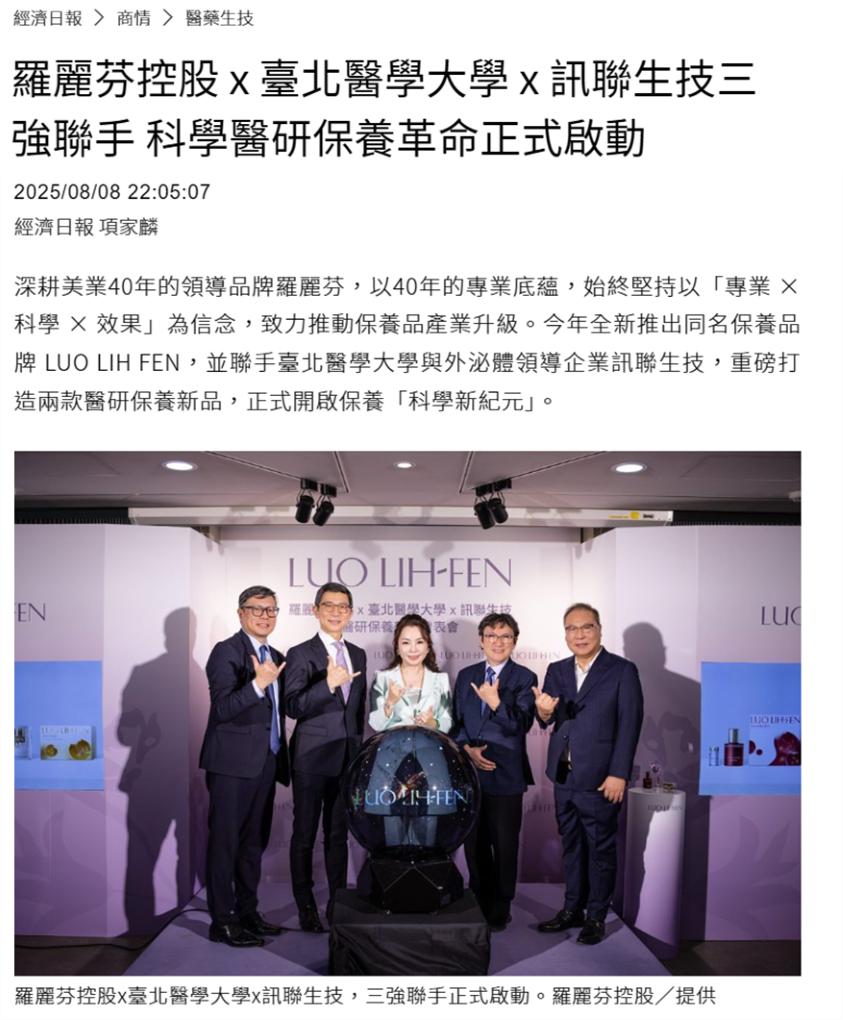 推出同名保養品牌 LUO LIH FEN,並攜手臺北醫學大學與訊聯生技,打造結合醫研背景的外泌體保養新品。