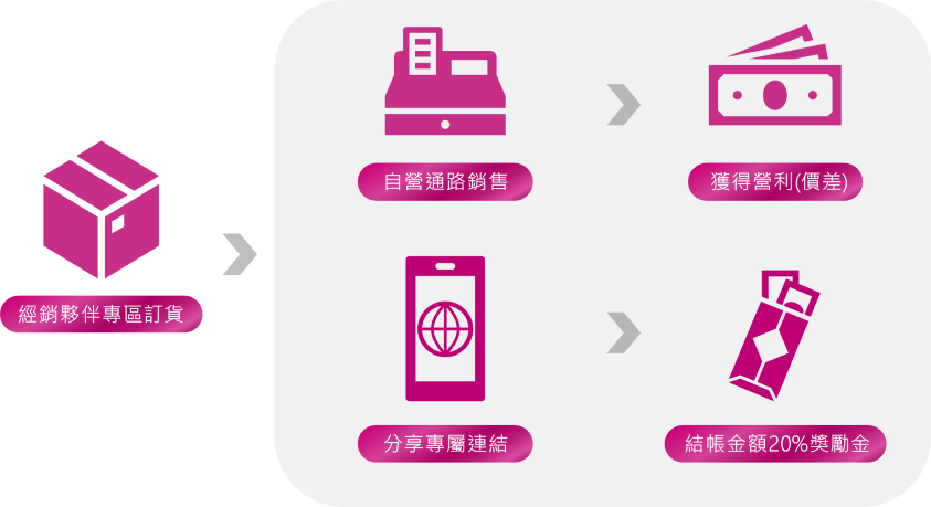 A:以【專屬推廣頁面+經銷體系管理】雙重機制,確保每筆訂單歸屬於您,保障合作夥伴的銷售成果與利益。