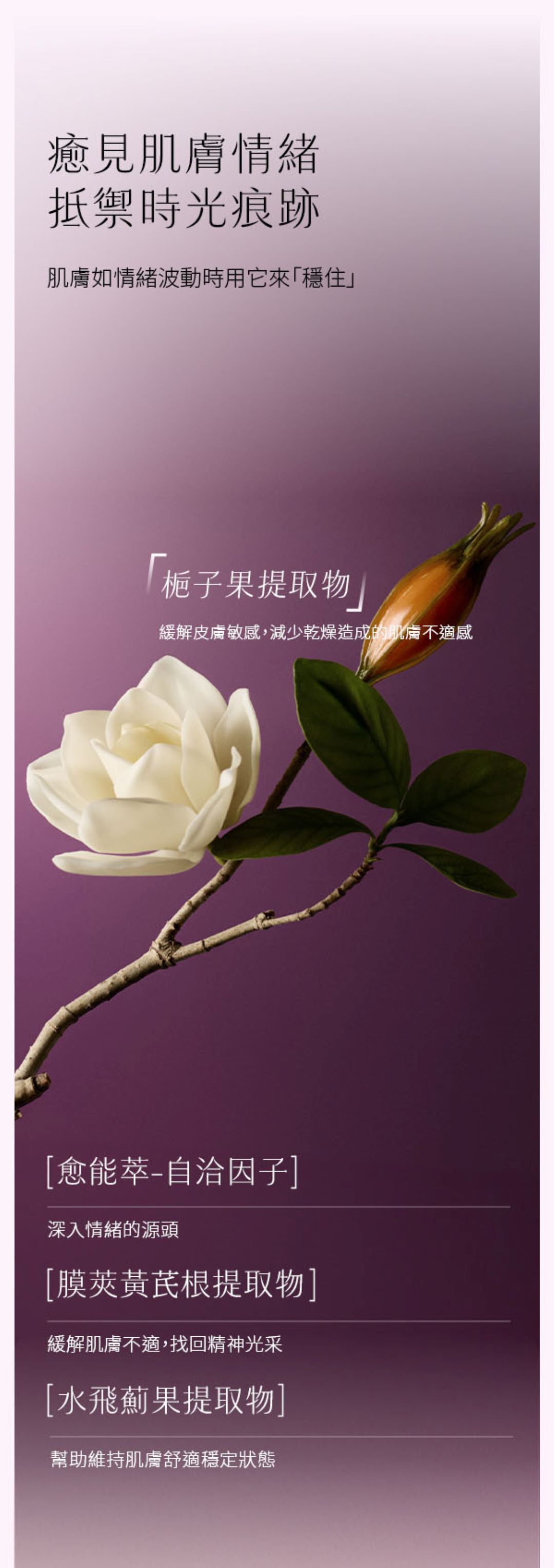 ● 《羅麗芬》專利「梔子花植萃」:強化修護力,穩定膚況