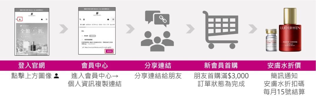● 好友透過「專屬推薦連結」完成滿$3000首購