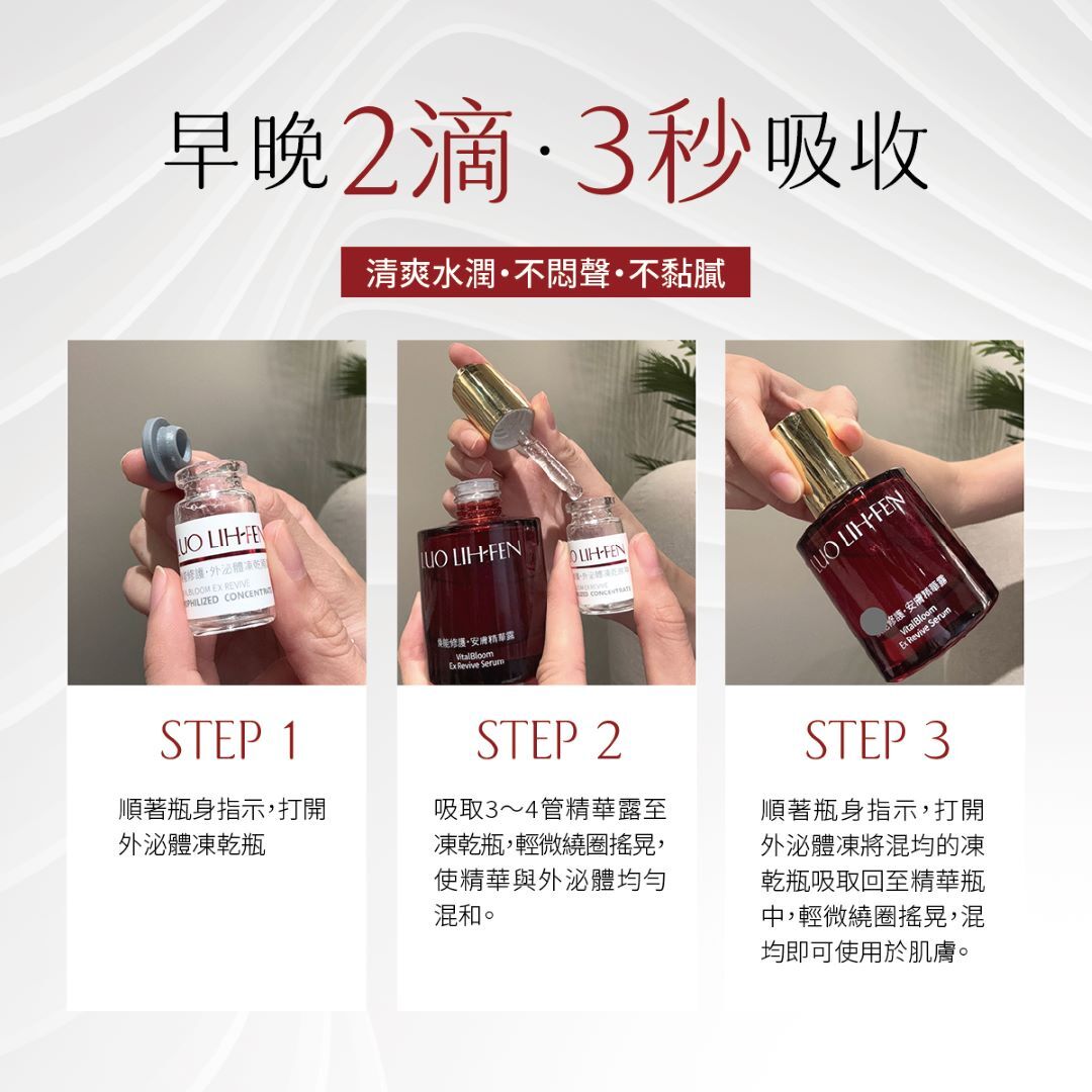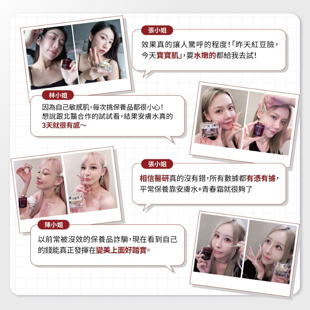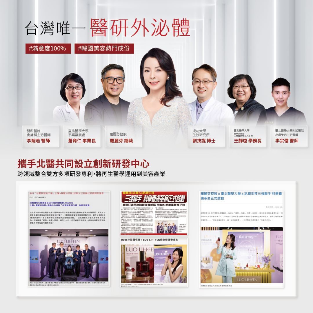 通過台北醫學大學附設醫院皮膚科嚴格臨床評估標準,針對實際使用者進行膚況變化觀察、舒緩效果與皮膚耐受性多層面檢測,驗證配方的穩定性與有效性,打造出台灣少數臨床實證「3日有效」的「外泌體醫研保養品」。
