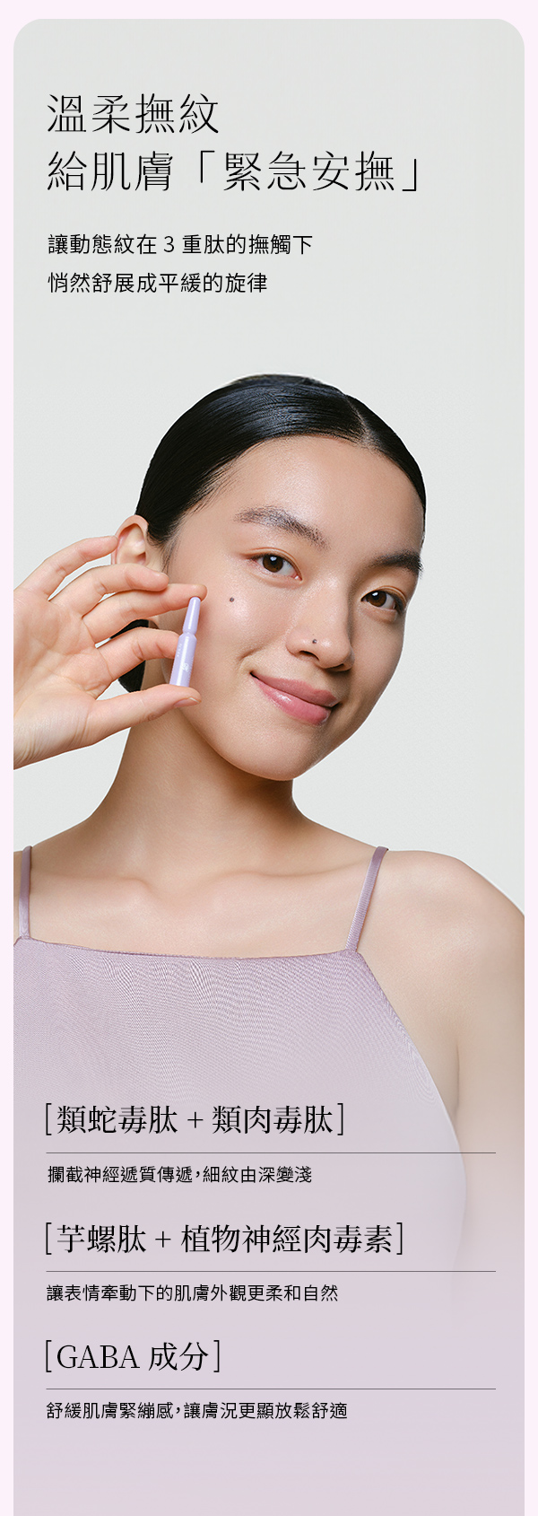 ● 多重胜肽配方,使肌膚線條看起來更柔順